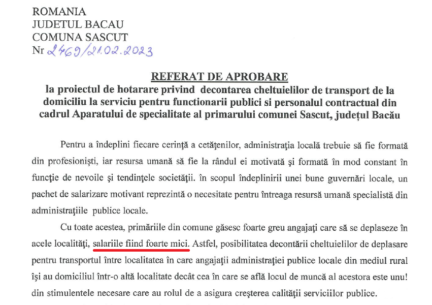 In referatul de aprobare semnat de Ionel Apostol, viceprimarul afirmă că „salariile sunt foarte mici”.